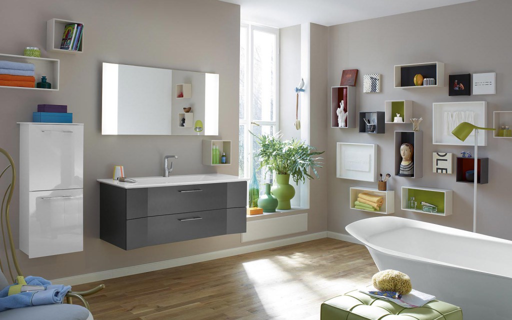 exemple meuble salle de bain gris.