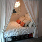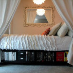- idée table de chevet qui s’accroche au lit